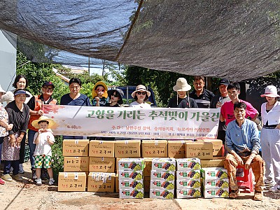 2025년 9월 21일 김성일 전 평택 민주평통자문위원장님께서 직접 농사지으신 쌀 50포대와 고구마.포도.식사등 제공하여 주셨습니다.